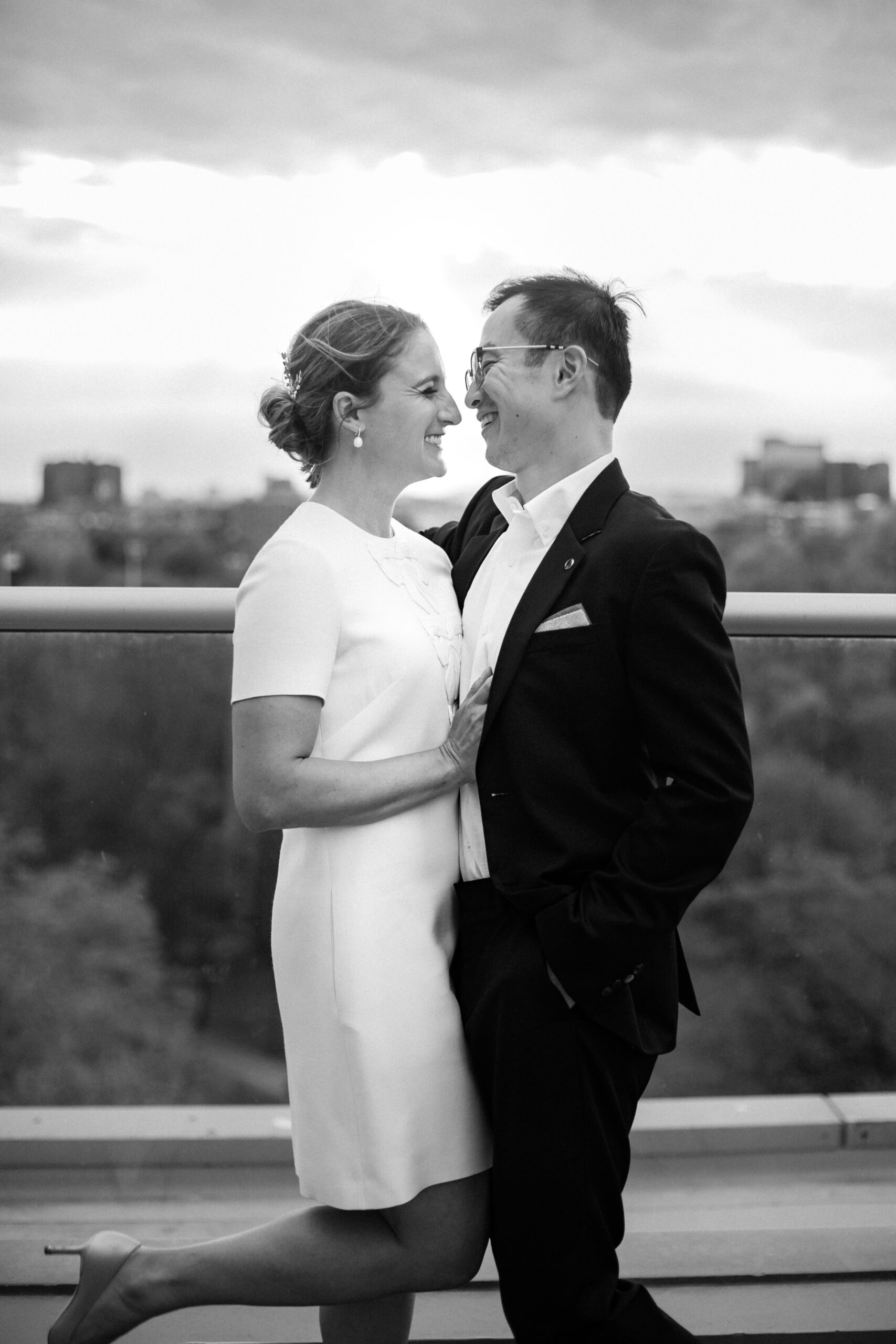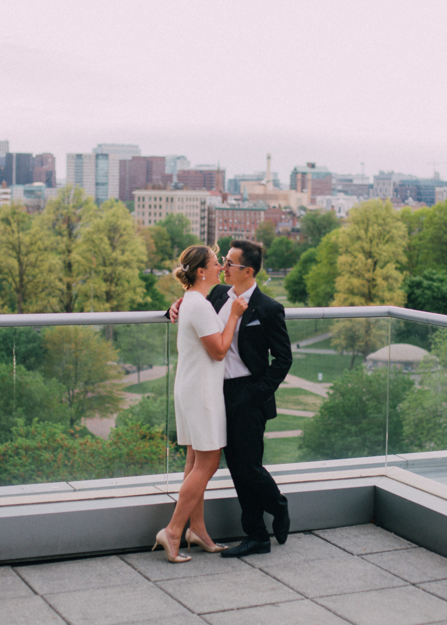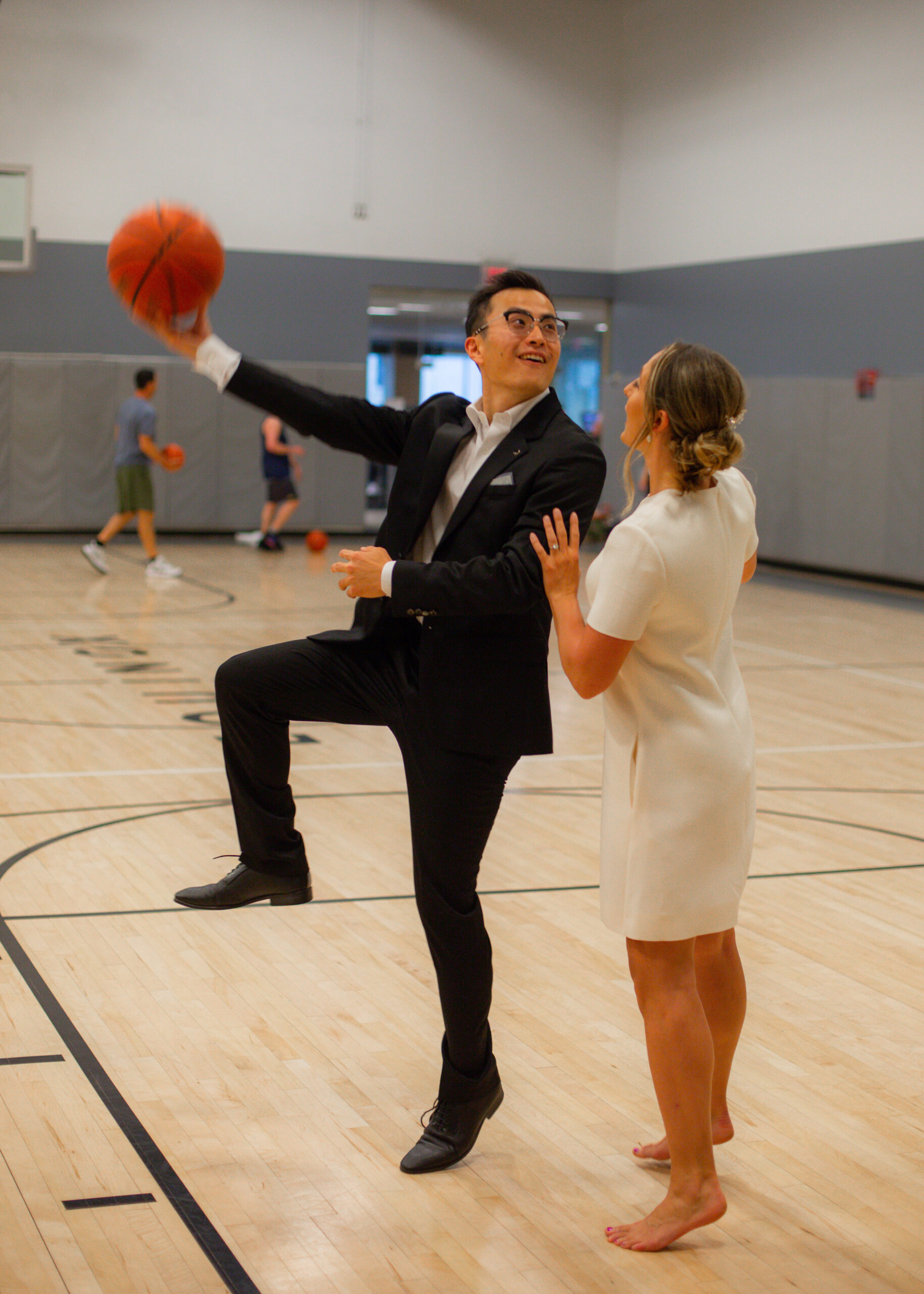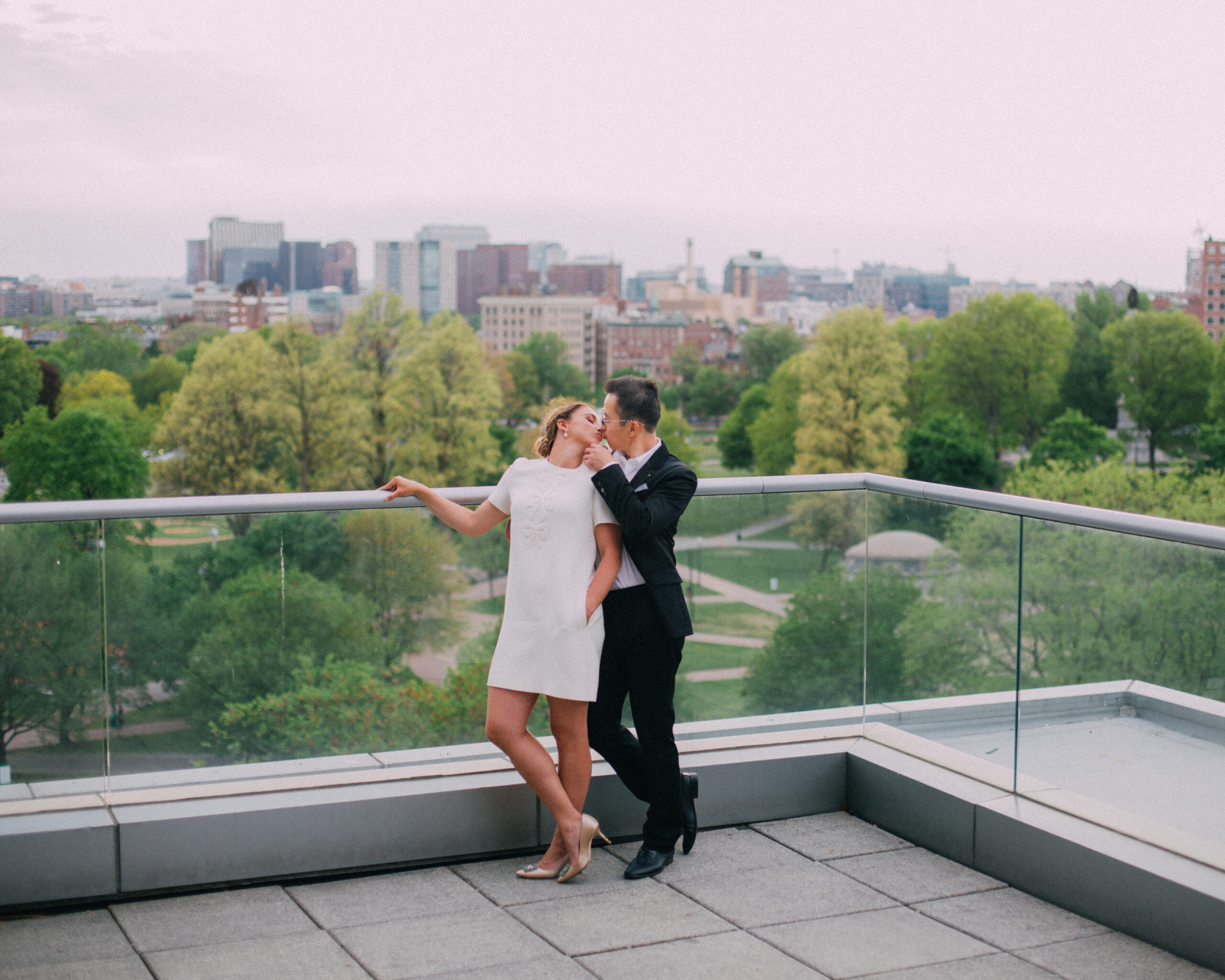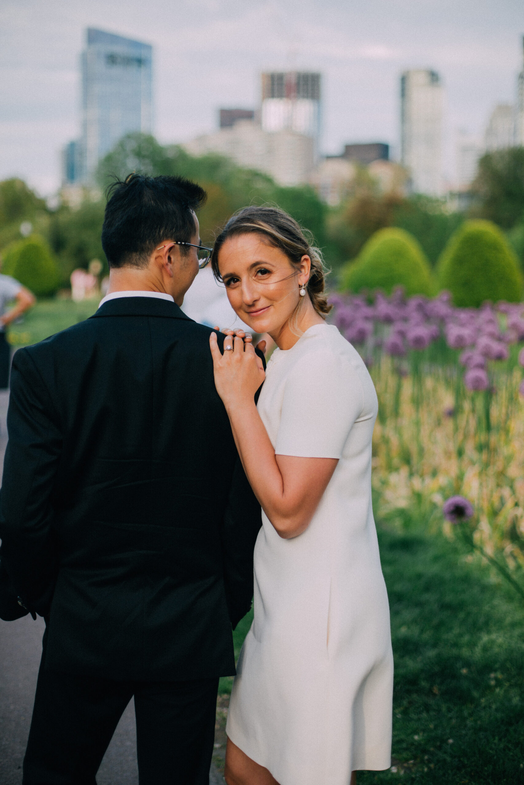 This couple decided to take advantage of mutliple locations nearby to the gardens for their engagement session photos. We spent the majority of our time in the gardens, and then we walked to a nearby Equinox gym. The couple has a fond memory of meeting at the gym while playing on a basketball team together. So we went over to the gym and took some photos playing basketball. Then, we went up to the rooftop at the Equinox in Boston and took some photos on the rooftop overlooking the Boston skyline. This was a great ending to their engagement session.